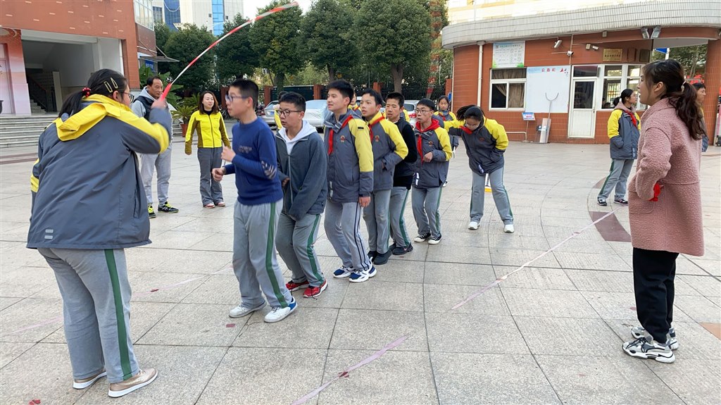 骆淏玥:我身为裁判,有很好的观看视角,但又必须公平公正,所以没办法为班级的参赛选手加油。但是我看着他们,默默的在心里加油,憋着一股劲。他们跳完后我也会朝他们一笑表示祝贺。最令我印象深刻的是我们班多人跳时,由于我不需要数数,所以便一心一意地观看他们比赛。我看着他们富有节奏地跳,而且跳地很平稳,心里十分激动,差点就把那高兴的心情喊出来了。看见他们断了,我也内心一揪,但又无比相信他们,始终在内心为他们加油。听到结果是我们班第一时,我真的十分高兴! 崔心瑜:最难忘、最自豪的多人跳实在令我骄傲。赛场上,两位甩绳的同学脸上十分严肃,但透着信心与勇气,大家跃跃欲试。“哔——”哨声响起,长长的竹节绳甩动起来,“哗哗”地划破空气。班主任在旁紧张地数着数,为我们维持节奏。每个人都把自己的反应力与敏捷发挥到极致,即使失误,也会很快调整好。不一会,有同学的喘息声大了起来,但大家依旧继续燃烧着热血,直到另一个哨声响起,所有人大汗淋漓。回到班里,老师微笑着自豪地说:“这次多人跳,我们班第一名!”“耶!”我们欢呼。心中于是没有了劳累,而是满满的收获。