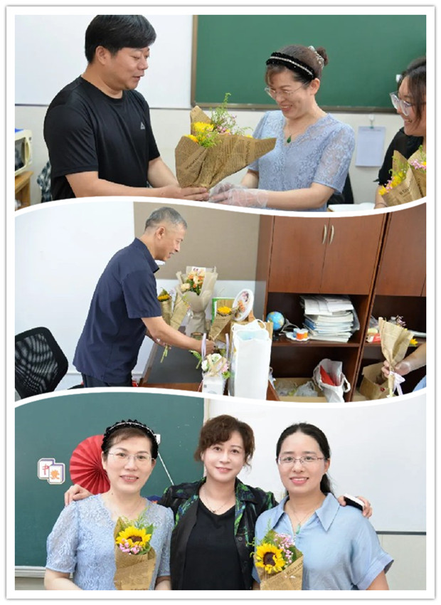 9月10日上午,校领导班子来到老师办公室,向辛勤耕耘的老师们致以亲切的问候和节日的祝福,一支支娇艳欲滴的鲜花,如同绽放的希望,象征着教师们在教育之路上播撒的爱与智慧,也温暖着老师的心灵。 Part03·感恩教育主题活动